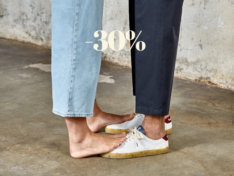 • 30 % de réduction sur le prix de base de la sélection de baskets minimalistes incluses dans le fitre "-30'%", et sur les chaussettes