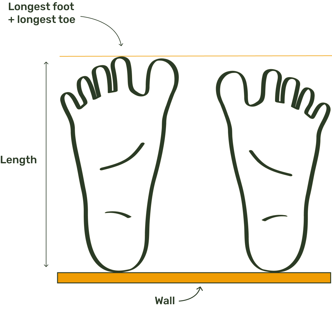 - Find your longest toe and measure the distance from the wall to the tip of that toe.