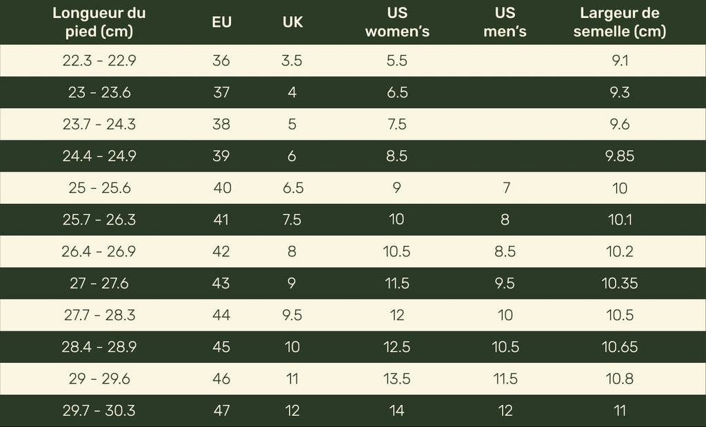 - Conservez la plus grande des deux mesures. Puis référez-vous à notre tableau des pointures pour identifier celle qui vous correspond.